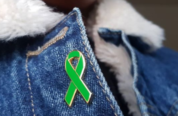 The green ribbon is the international symbol for mental health awareness.